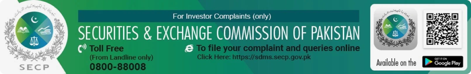 In case your Complaint has not been properly redressed by us, you may lodge your complaint with Securities & Exchange Commission of Pakistan (the “SECP”).